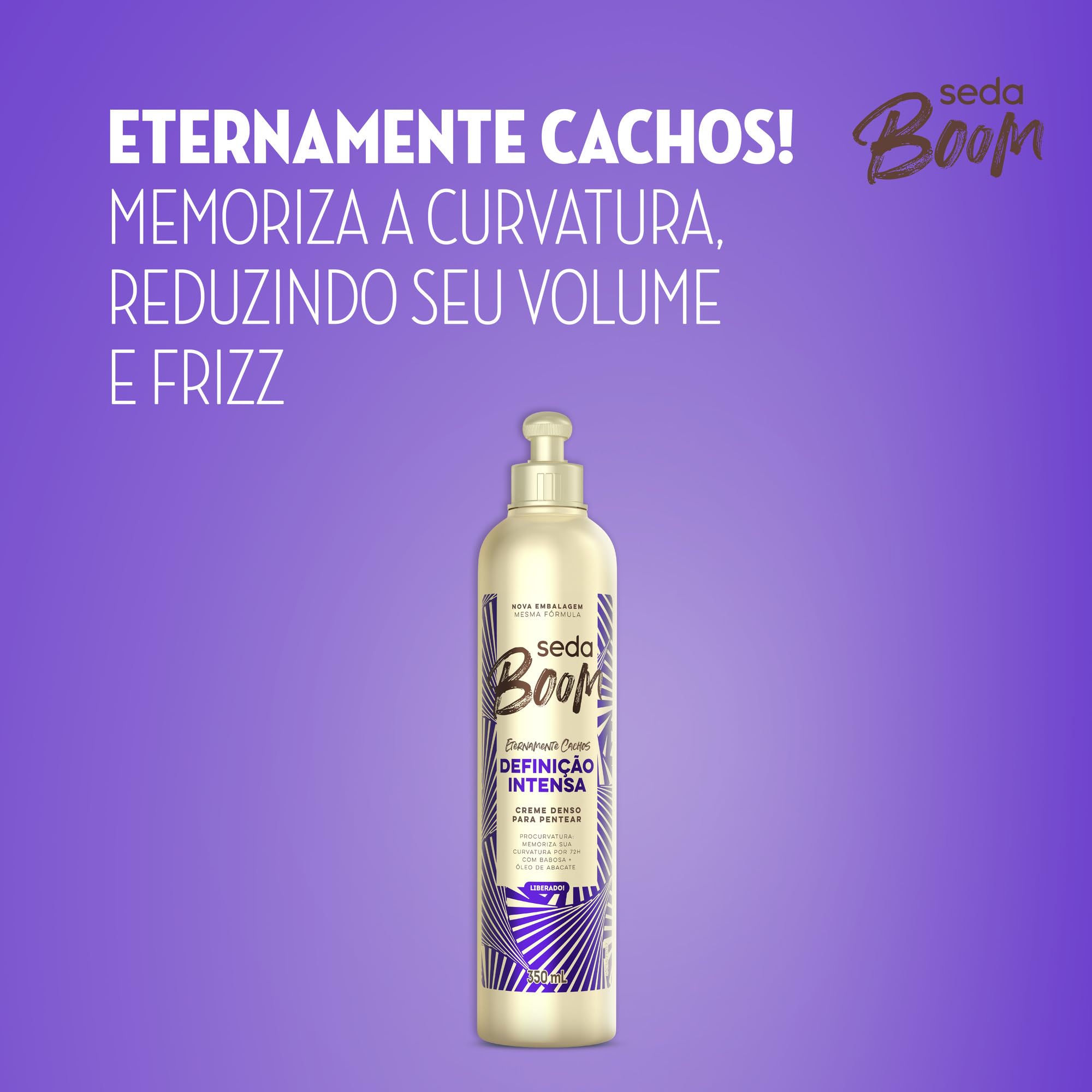 O Seda Boom Definição Intensa é um creme para pentear denso, formulado especificamente para cabelos ondulados, cacheados e crespos (especialmente do tipo 3ABC). Sua principal promessa é a ativação e memorização da curvatura dos fios por até 72 horas, garantindo alta definição e controle de volume.